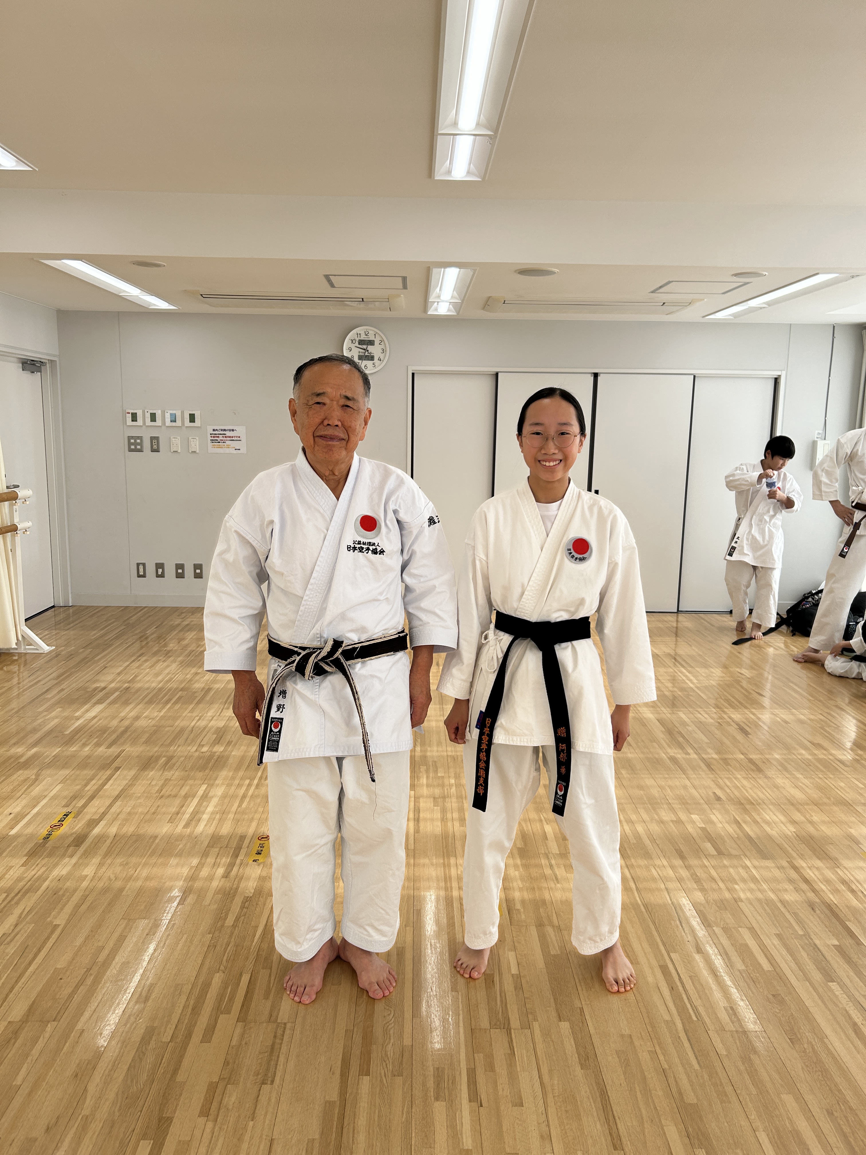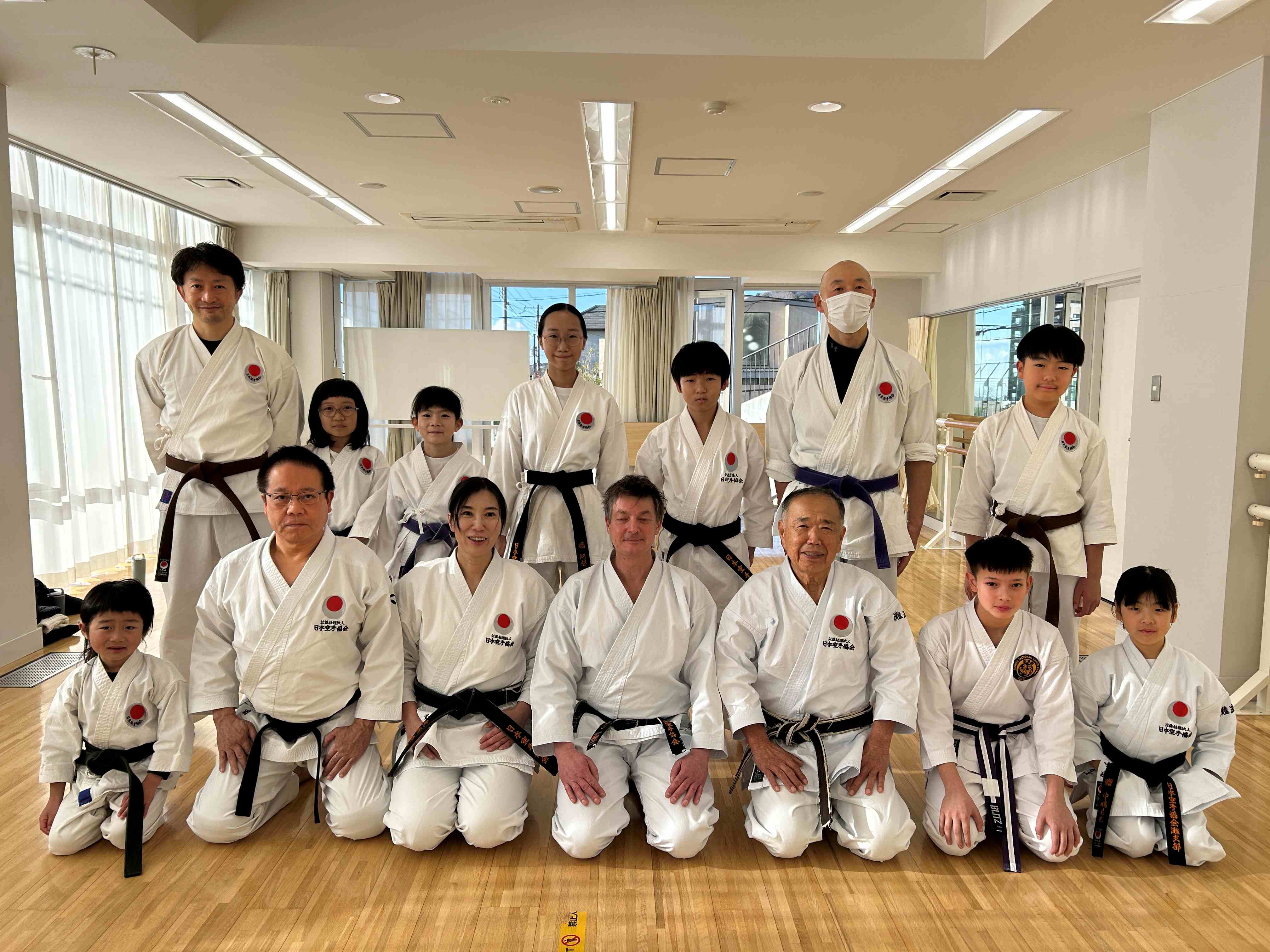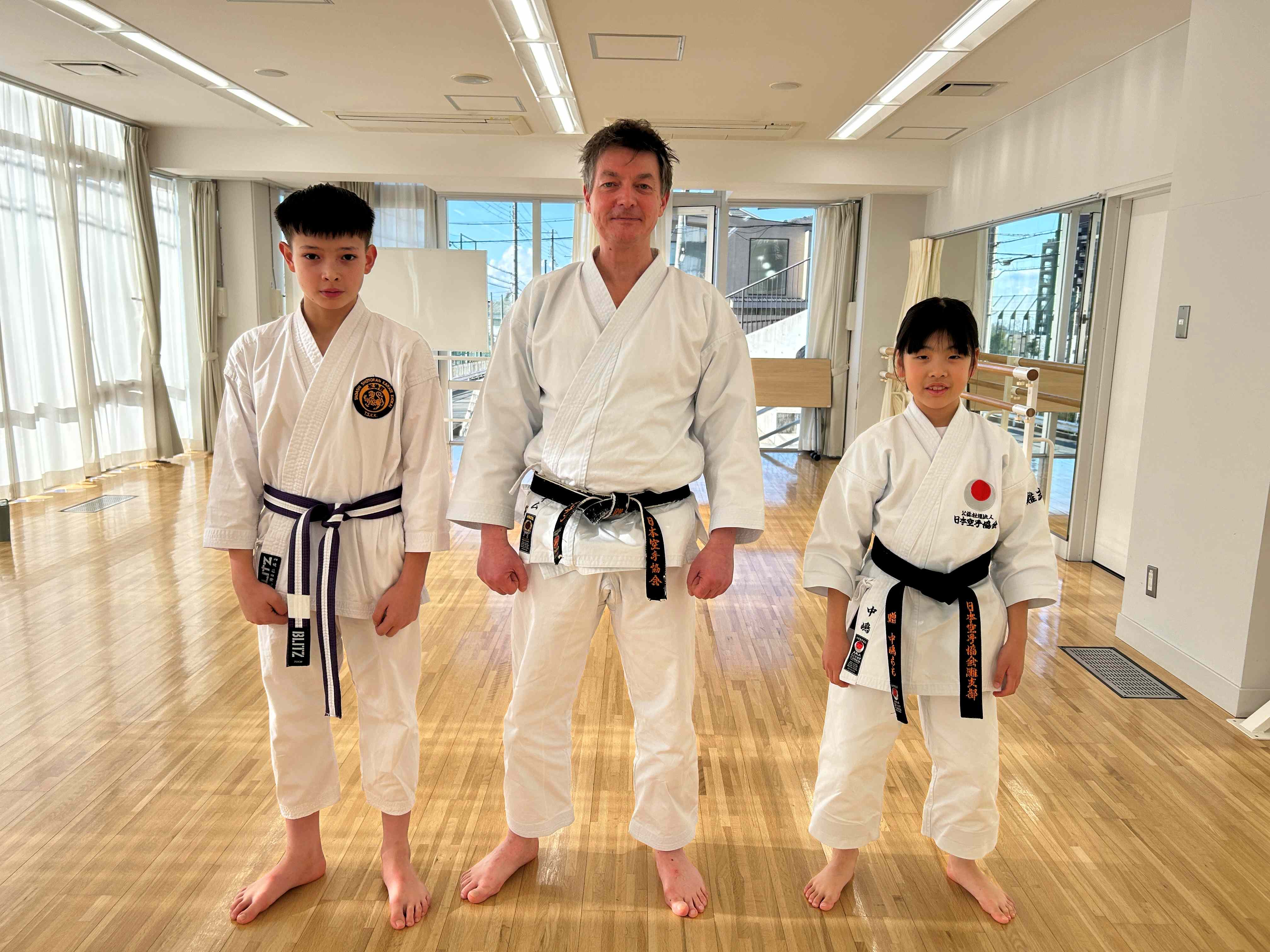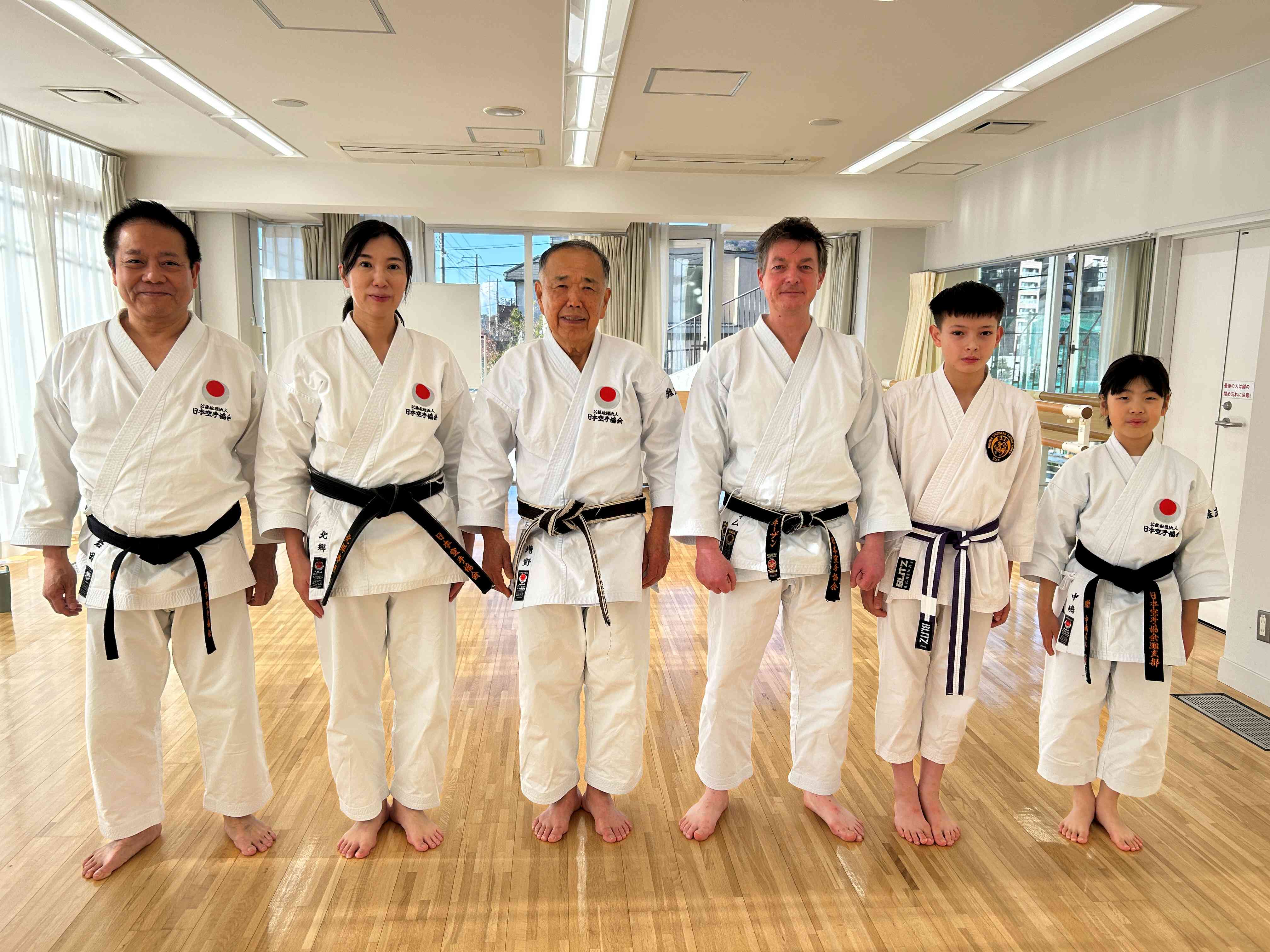 私達が指導していた旧六甲支部の門をたたきました。奥さんとお子さん達(女の子と男の子)も日本を去る前に黒帯を