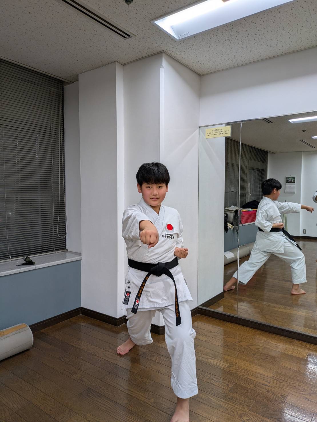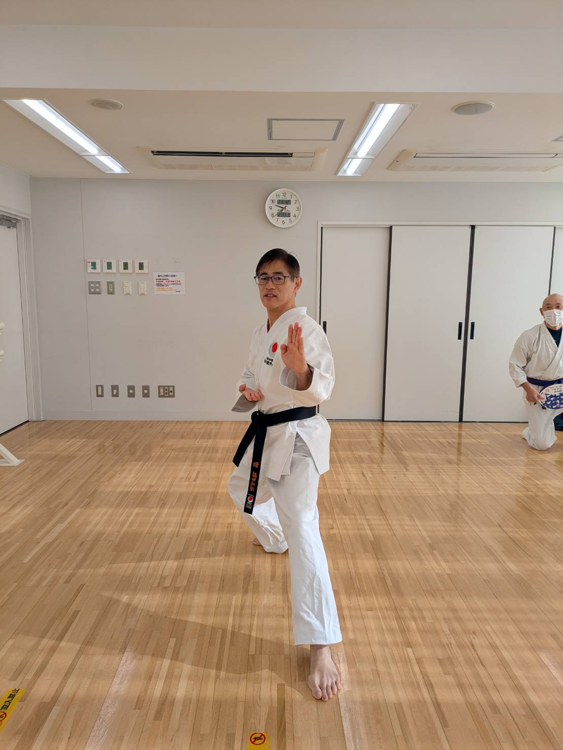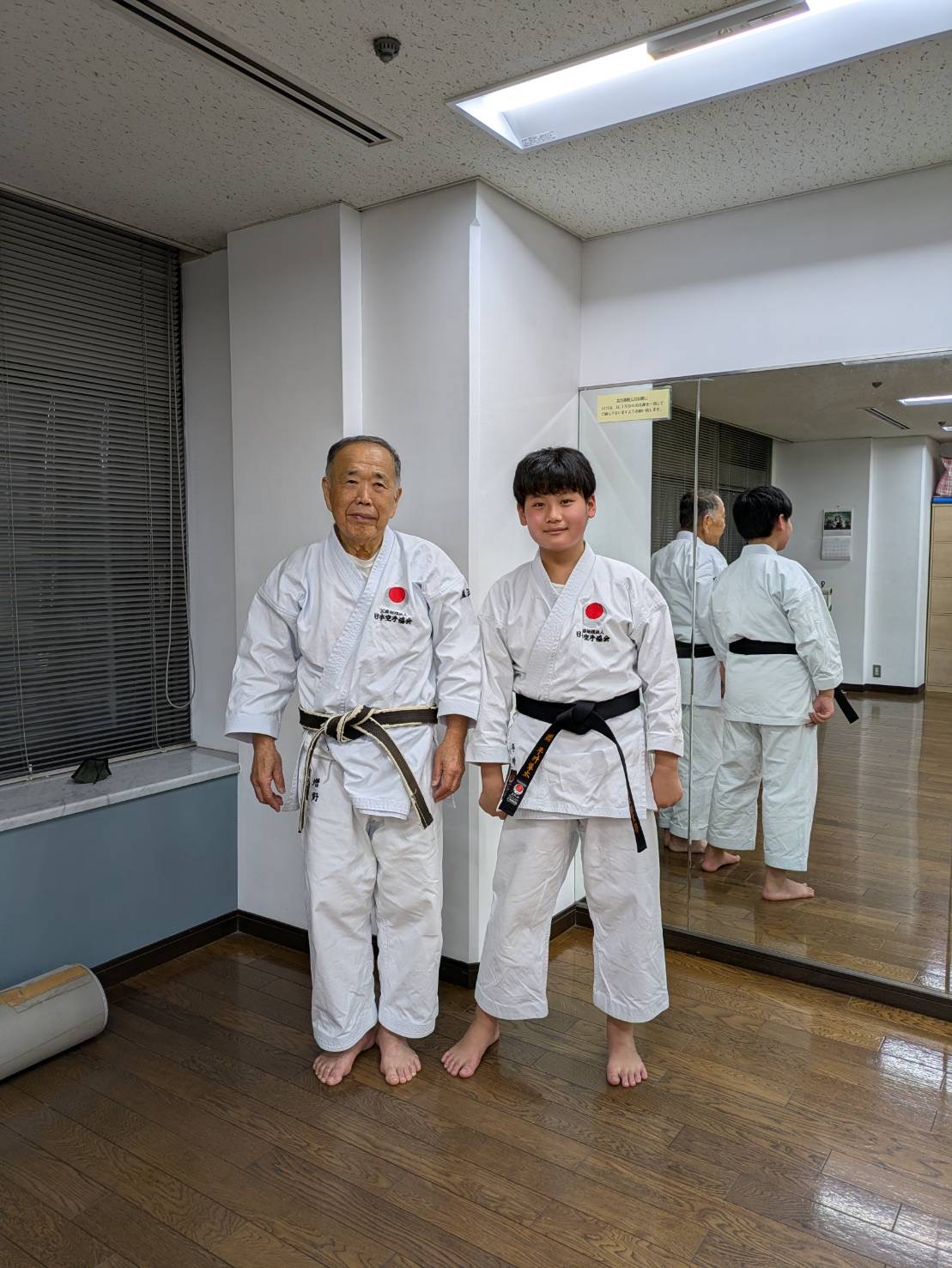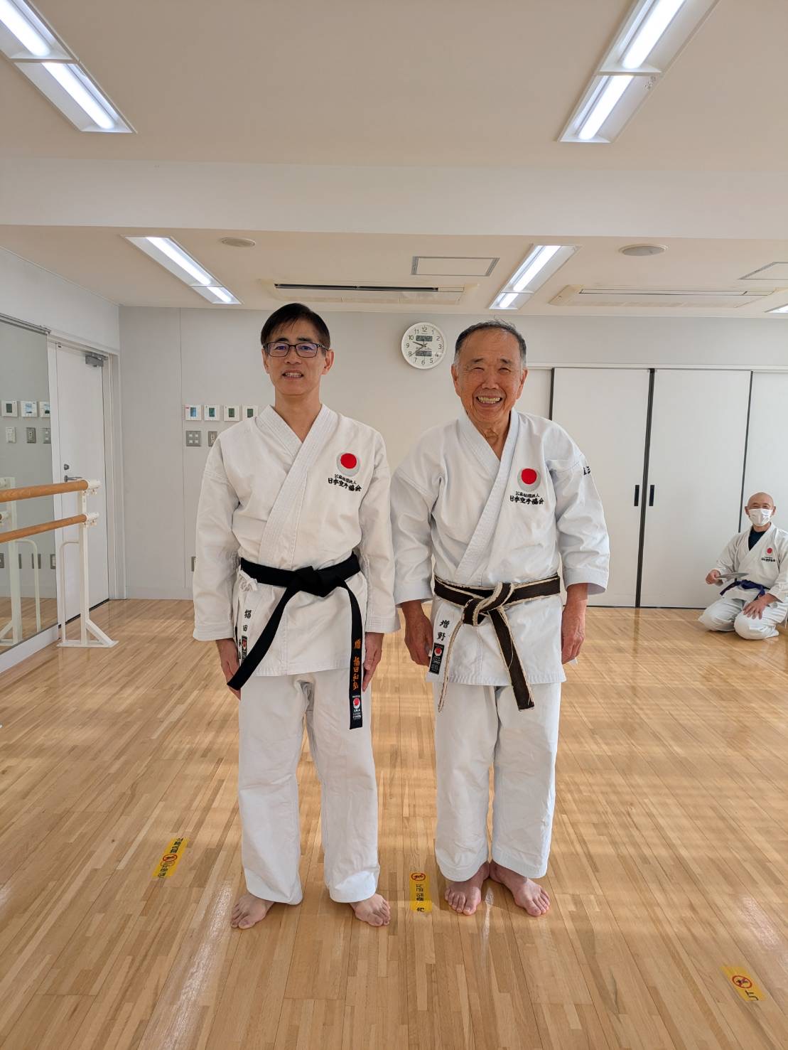 私達が指導していた旧六甲支部の門をたたきました。奥さんとお子さん達(女の子と男の子)も日本を去る前に黒帯を