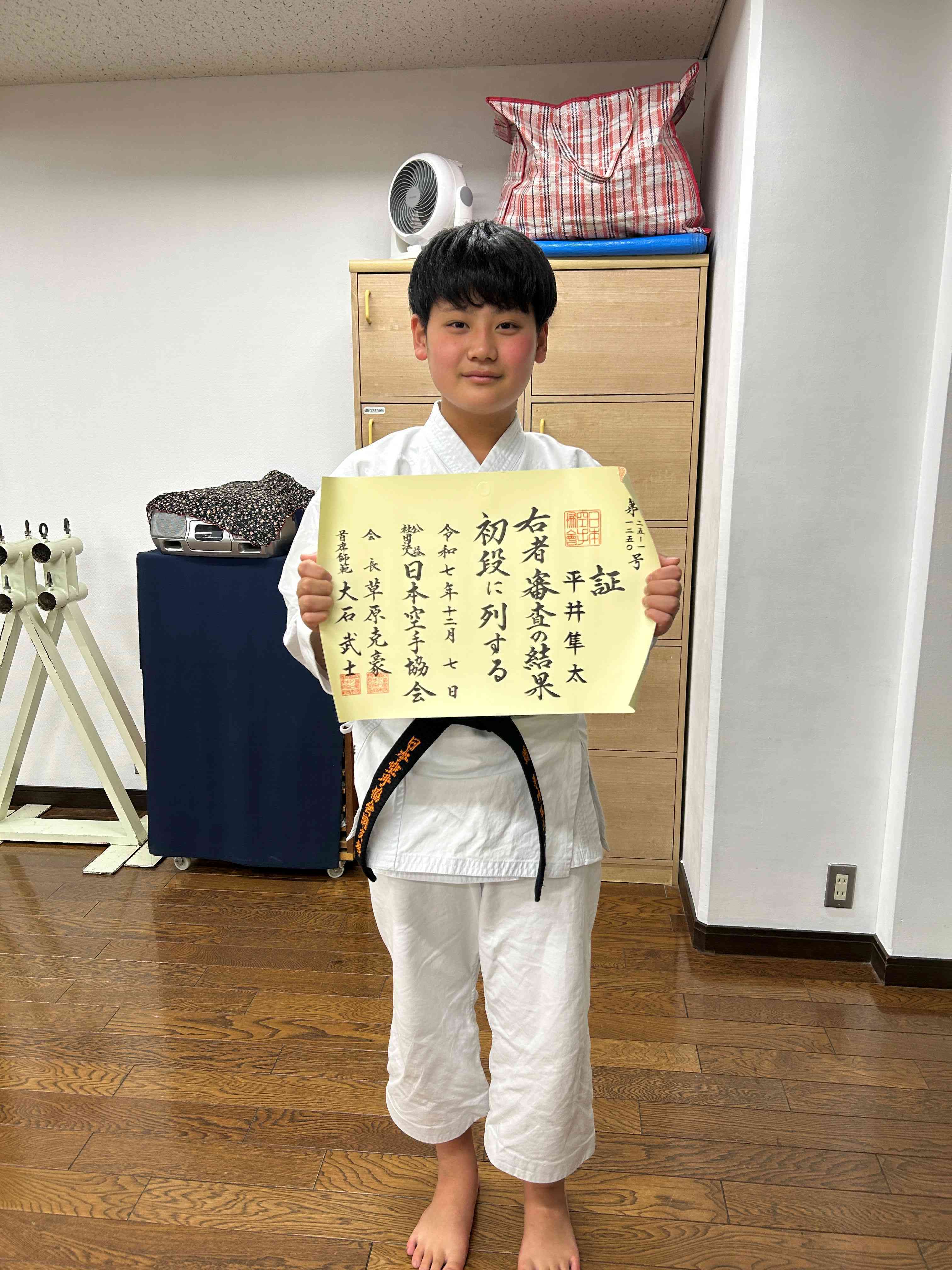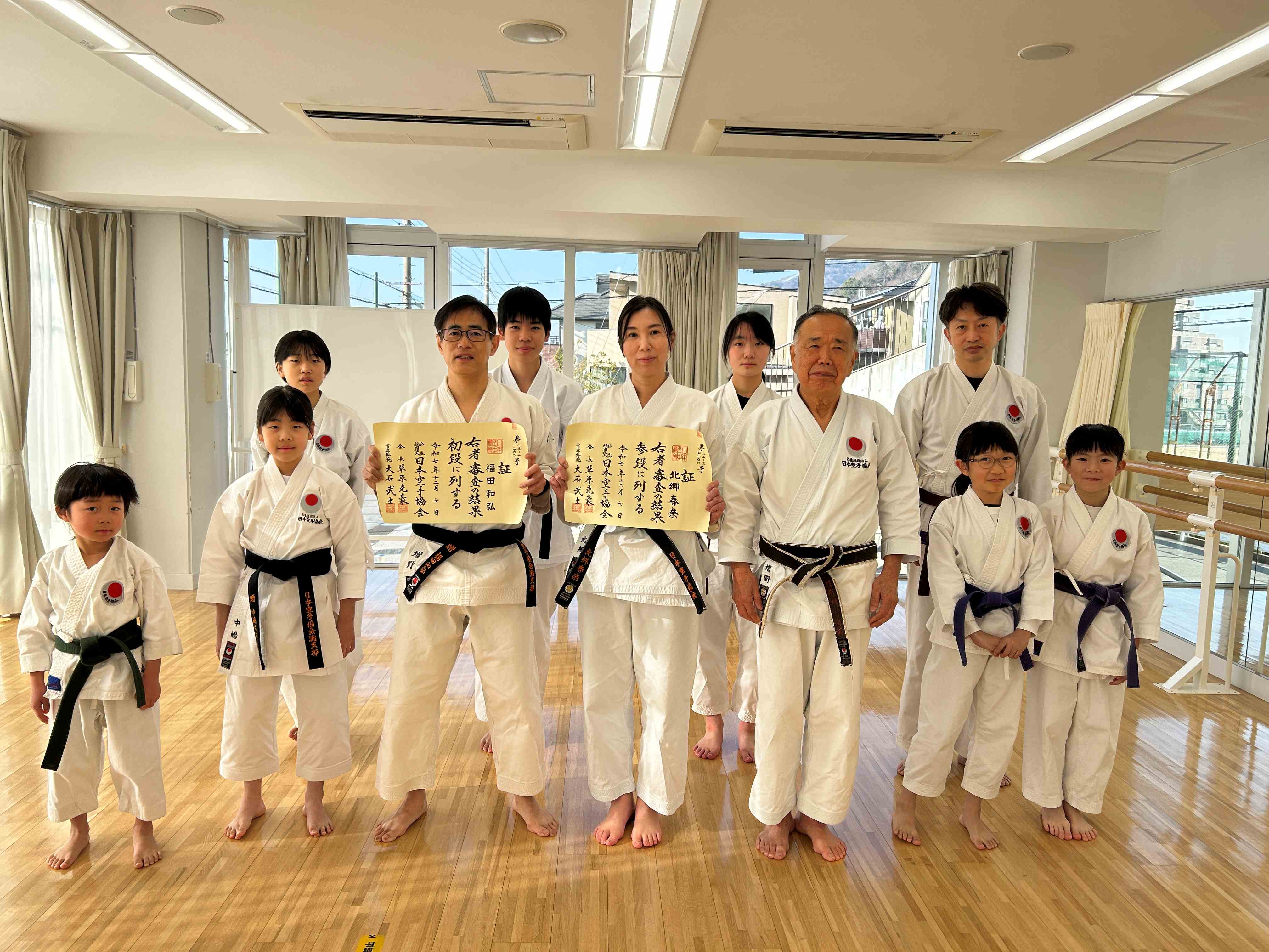 2025年12月7日に行われた昇段審査で、灘支部から受験した練習生が、3段-1人、初段-3人が合格という